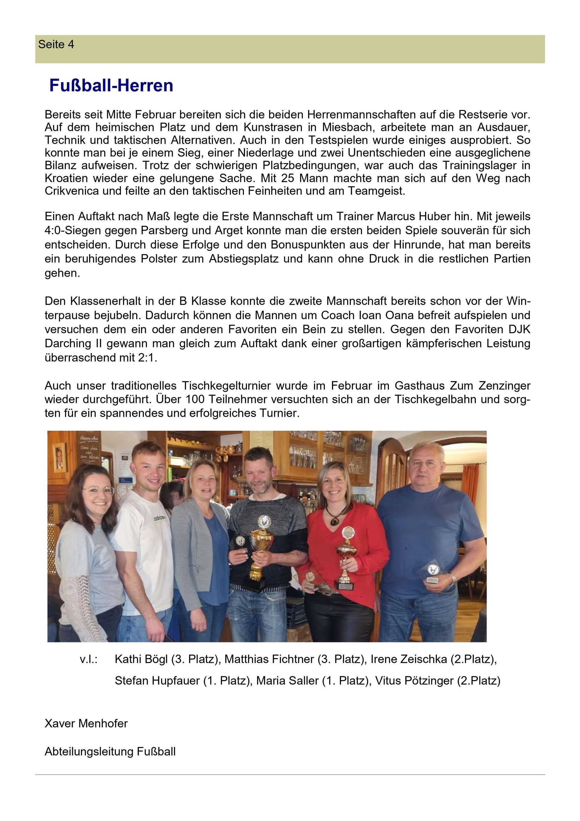 Bereits Mitte Februar bat unser Trainer Klaus Wörndl die beiden